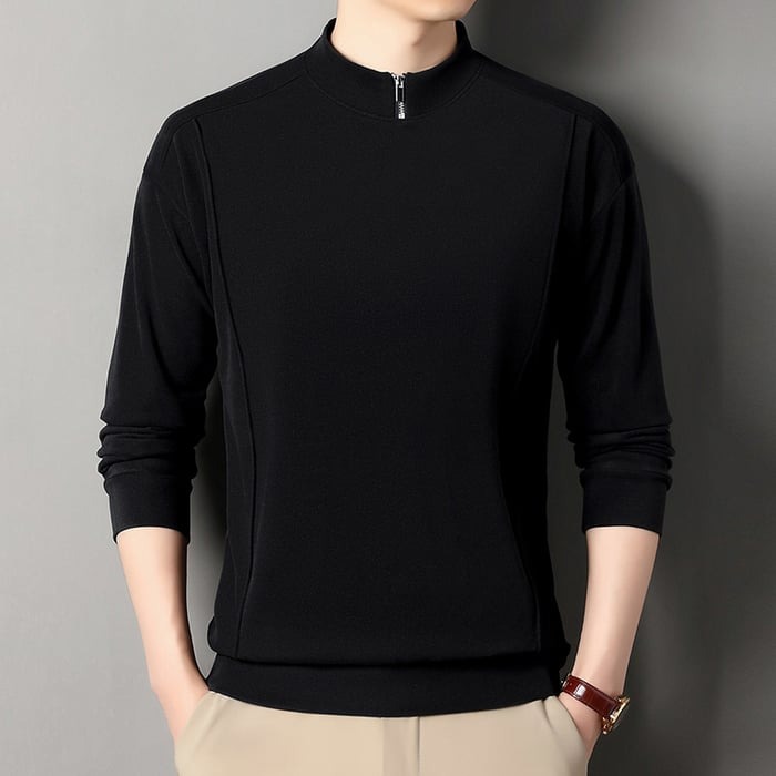 Package includes: 1 * Men's Cozy Long-Sleeve Pullover with Zip-Up Stand Collar